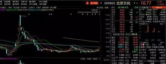 据了解,北京文化原为旅游文化公司,于1998年在深交所上市,2013年向影视娱乐业转型,目前主营为旅游和影视文化两大板块。2017年夏季,北京文化投资并参与保底的现象级影片《战狼2》点燃了观众的爱国热情,创下了中国乃至全球华语电影票房新纪录——56.8亿元,北京文化的股票在当时也一路飞涨。