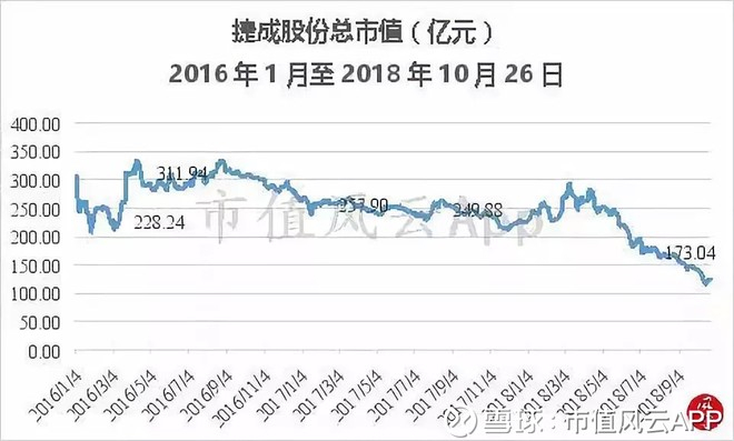 不过,从2016年中开始,文化传媒领域的并购重组炒作之风就凉凉了,行业里的公司市值开始进入持续缩水模式,捷成股份的市值也跌跌不休。