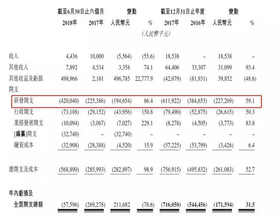 由于还没有产品上市产生收入,公司在2016年、2017年以及2018年截至6月底的亏损分别为人民币5.44亿、7.16亿以及0.58亿。其中,2018年6月底的亏损减少主要是因为上半年进行的E轮融资导致D轮优先股的公平值下调。