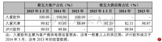 其中,久爱天津在2013年至2015年1-3月各期间,其应收账款占总资产的比例分别为62%、28%、33%。久爱致和各期应收账款占总资产的比例分别为7%、57%、47%。存在一定的赊销销售。