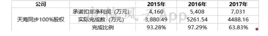 不过,从业绩承诺情况来看,天海同步3年均未达标,2017年完成率仅为63.83%。