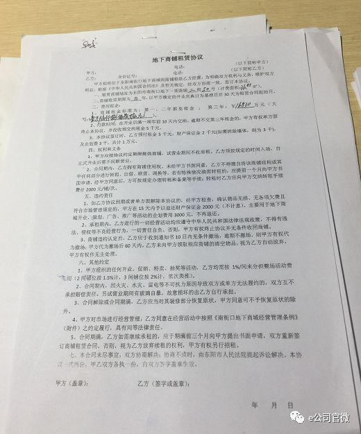 商铺免费出租可不是一句玩笑话,在新光天地的地下商城的管理处,记者看到了一份《地下商铺租赁协议》,一个44平方米的商铺,租金标准为:第一、二年都免费出租,第三年2.02万元。
