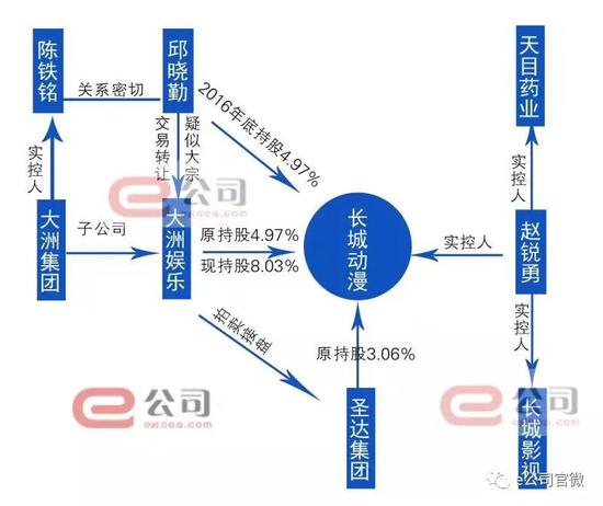 2014年,长城集团入主彼时的四川圣达(即长城动漫前身),原控股股东圣达集团委托长城集团管理1000万股,圣达集团、长城集团、公司实际控制人赵锐勇构成一致行动关系。