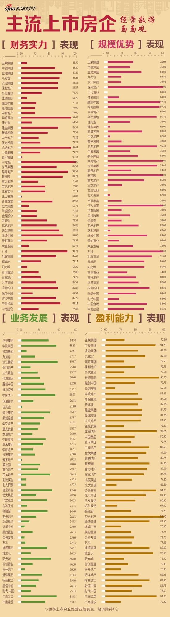 评分方面,融信中国业务发展、财务实力方面评分相对一般,公司的规模优势、盈利能力等两方面评分都表现相对较好。