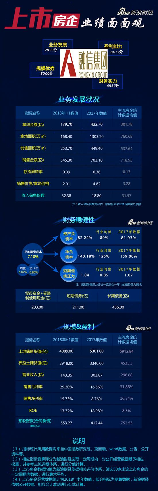 (4) 上市房企经营数据统计为2018年半年数值,部分指标为测算数据,新浪财经依据公开数据、相应会计准则进行公式计算。