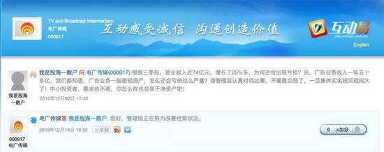 也就是说,自2017年以来,电广传媒共亏了6亿。业绩连续亏损,导致投资者强烈不满。