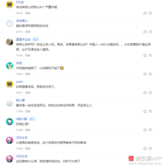 对于此次东阿阿胶提价,爱股票用户的主要的质疑点还在于“阿胶到底补不补、值不值上市价?”