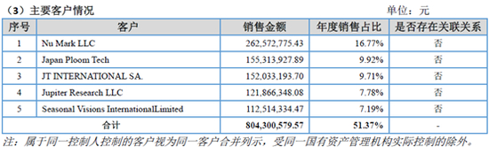 第二大客户Japen Ploom Tech与Juul也有渊源。2007年,Juul的创始人Adam Bowen和James Monsees创办了电子烟公司Ploom,8年后将该品牌出售给了日本烟草公司。随后将公司名字改为Pax Labs,推出了一款形似U盘的电子烟——Juul。