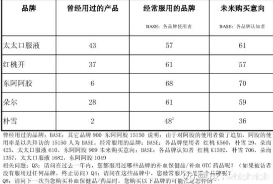 从这份问卷中可以看出,身体虚弱是阿胶消费者的一个重要需求痛点,这也是后来管理层转变定位为滋补国宝的底气之一。不过这个问卷问题是问在什么情况下会补血,所以相信其实也有很大部分消费者的心智还是落在补血而不是身体虚弱上。