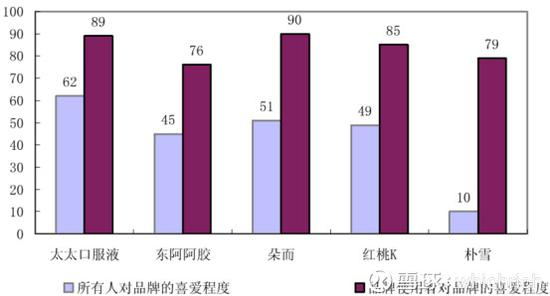 品牌喜爱程度可以看出,东阿阿胶在当年并没什么优势,还是个竞争力比较弱的品牌。
