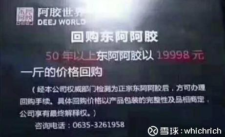 其实拍卖市场上甚至有陈阿胶拍卖会,许多二三十年前的阿胶块,如果保存完好,放到现在都可以拍出很理想的价格。我看到有场拍卖会,九几年产的250g阿胶块可以卖到近2万块,而东阿阿胶也曾发起过回购陈阿胶的活动,50年以上东阿阿胶以19998元一斤价格回购。