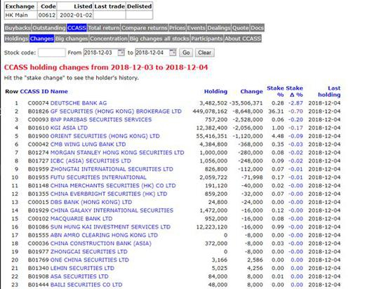 进入2018年11月之后,中国鼎益丰每天成交额均在1亿港元左右。2018年11月30日,中国鼎益丰成交突然放大,全天成交额为15.23亿港元。德银以及广发证券(香港)席位为当天卖出主力,其中德银卖出3550.6万股,广发证券(香港)卖出864.8万股。