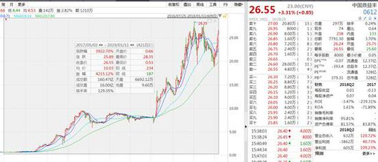 Wind数据显示,中国鼎益丰股价自2017年5月的0.53港元开始上涨,最高曾涨至28.35港元,以2019年1月11日收盘价26.55港元计算,累计涨幅达到4909%,总市值从约7亿港元涨到328.3亿港元。
