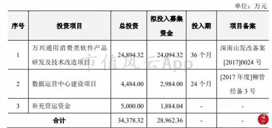 募投项目包括“万兴通用消费类软件产品研发及技术改造项目”“数据运营中心建设项目”“补充营运资金”三个项目,总投资3.44亿。