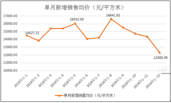 如上图所示,保利地产今年的销售情况可谓是“高开低走”,从年初的销售金额同比高达106.41%的增速一直下降至年底,单月销售金额同比年底更是在0%附近的低位。可见,在“房住不炒”的持续调控背景下,强如保利地产的销售也面临巨大的回款压力,不仅如此,保利地产全年的销售单价也呈现明显的下降趋势,如下图所示,单月销售均价从2018年1月份的1.45万元/平方米先上升至1.66万元/平方米,但自8月底以来,销售均价单边下行,2018年12月单月的销售均价为1.23万元/平方米,这是自2017年1月以来两年间最低的销售单价。