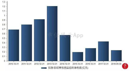 随后,虽然扣非净利润在2016年与2017年出现回升,但与2010年至2013年的数据对比已判若两人。