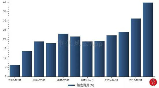 华仁药业的销售费用率从2007年的6.35%飙升至2018年前三季度的39.79%,而其余各科目占营收的比例基本维持不变。