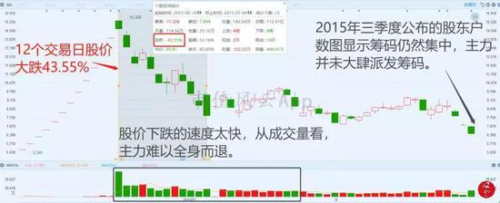 从上图得知,股东户数在2015年第四季度出现成倍增长,户均持股数量下跌超50%。