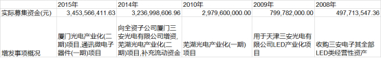根据数据复盘可知,三安光电仅历次定增,融资总额便共计达到110亿元。