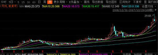 2008年收盘复权价0.83元,2018年年初爬到29.68元,10年股价前复权攀升35倍——三安光电拳打脚踢一切A股白马股,一路狂奔,跻身上证50行列。