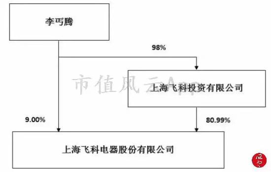 而李丐腾直接持有飞科投资98%的股份,另外飞科投资2%的股份为其父亲李洪积所持有。