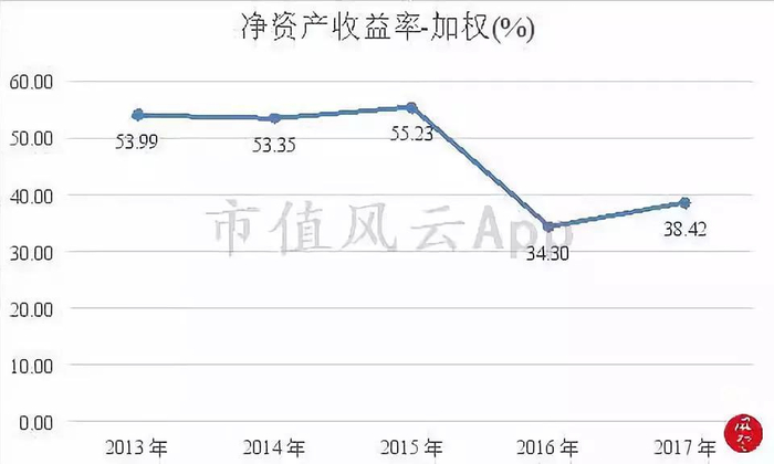 公司的加权净资产收益率近5年来分别为53.99%、53.35%、55.23%、34.30%和38.42%,总体上水平较高。