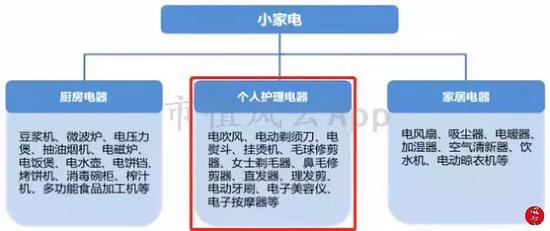 按照使用功能,小家电产品可以分为厨房电器、家居电器和个人护理电器产品三类,公司属于小家电中的个人护理电器子行业。