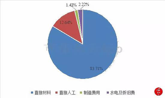 公司的产品采用外包和自产相结合的方式。下面仅就公司自产产品的成本结构做下分析。