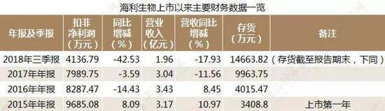 这从海利生物的近年业绩表现可见一斑。自2015年上市顺利募资后,公司经营业绩不仅没能顺势提升,反而呈现逐年递减的态势。数据显示,上市第一年(2015年)公司实现净利润同比下降5.75%;2016年公司净利润同比下降10.34%;2017年在投资收益扮靓下,公司净利润增长超过30%,但扣非后的净利润和营业收入同比却分别下降11.56%、3.59%。