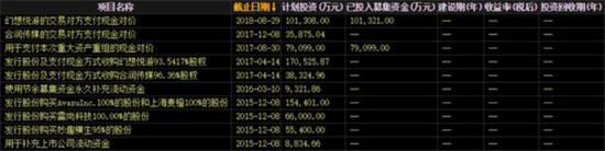 图为天神娱乐近几年的并购项目,截图来源:东方财富Choice数据