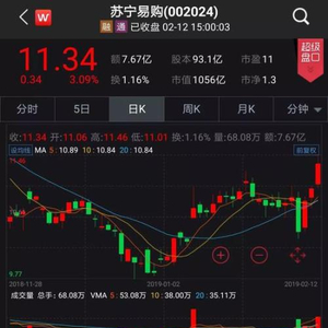 受收购万达百货影响,今日苏宁易购股价表现抢眼,涨幅达3.09%。