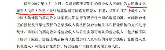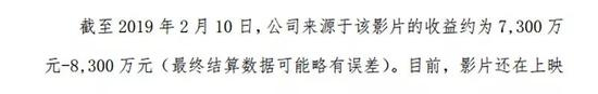北京文化2月12日发布公告,透露了截至2月10日的影片收益: