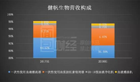 公司主要专注于血液灌流领域,产品包括一次性使用血液灌流器、一次性使用血浆胆红素吸附器、DNA免疫吸附柱及血液净化设备等,应用于尿毒症、中毒、重型肝病等领域的治疗。其中,一次性使用血液灌流器是公司的主要收入来源。根据2018年半年报披露的数据,该产品在2018年上半年的销售金额达到了约4.16亿,占营收的比例为91.50%。