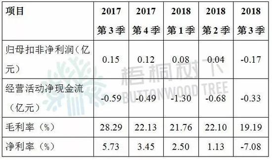 从2017年三季度到2018年三季度,连续5个季度,华脉科技各类关键指标持续保持下滑。前后仅一年多,毛利率下降超过9个百分点,净利率直接为负,更甚者,经营活动一直处于现金流出状态。