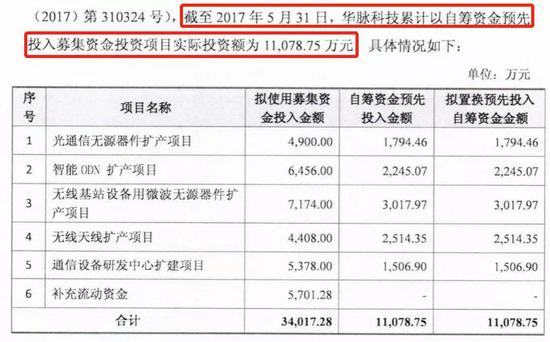 2018年9月26日,华脉科技发布募集资金使用情况报告。截至2018年6月30日,合计使用募集资金17823.65万元,剩余募资余额16193.63万元。5个项目无一完工。