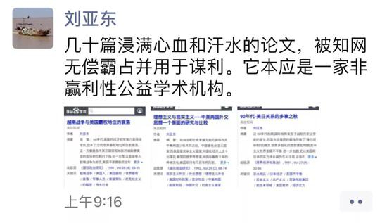 而2月20日,《科技日报》总编辑刘亚东在微信朋友圈也发文“几十篇浸满心血和汗水的论文,被知网无偿霸占并用于谋利。它本应是一家非赢利性公益学术机构。”