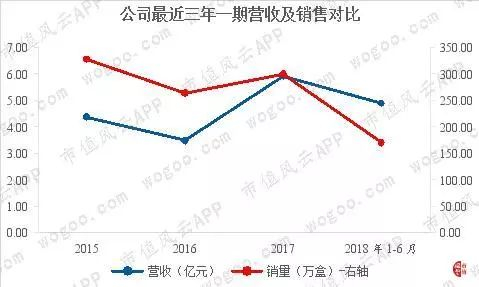 从产品销售情况看,2015年、2016年、2017年及2018年上半年,公司产品销售分别为326.70万盒、263.24万盒、299.09万盒、169.34万盒。