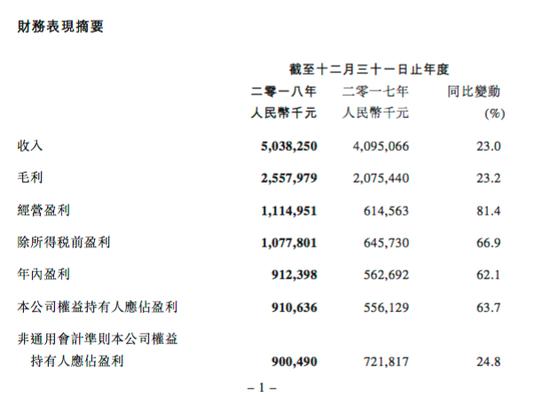根据招股书资料显示,2018年阅文集团实现营业收入50.4亿元,同比2017年的40.95亿元增长23%;全年实现净利润9.12亿元,相比于2017年同期的5.63亿元增长61.99%。
