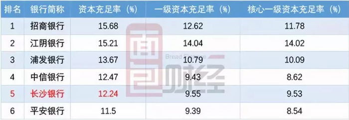 从以上数据来看,长沙银行的资本充足率排在第五位,一级资本充足率和核心一级资本充足率均排在第四名。