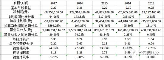 让我们再回到上面的简明报表,上表中销售净利率的提升,绝大部分都来自于“非经常性损益”。永安林业只在2015年获得了正值的扣非净利润,而在其他年份扣非净利润都是负的,并且2017年的5383万扣非净利润的亏损还是近几年最大的。