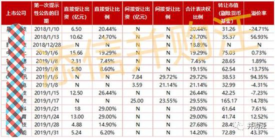 其中,转让市值最大为派生科技(原鸿特科技)的165.17亿,最小为奥维通信的0.89亿,而这两家都属于间接收购。