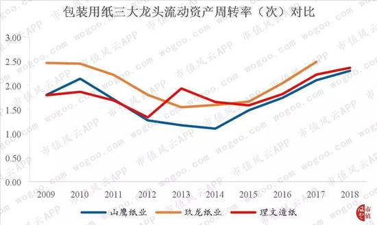 与同行对比,山鹰纸业流动资产周转率总体上要低于在港交所上市的玖龙纸业、理文造纸,公司营运效率与前两大龙头仍有差距,营运效率还仍有提升空间。