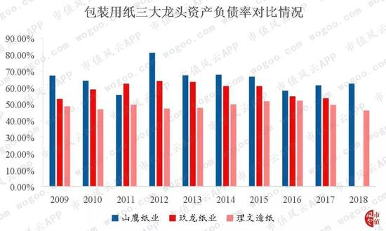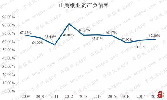 对比排名前两位的玖龙纸业、理文造纸,可以发现,虽然高负债率是行业特征之一,但是,山鹰纸业的资产负债率明显高于同行的玖龙纸业、理文造纸。