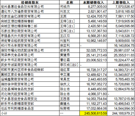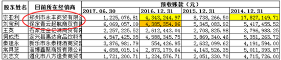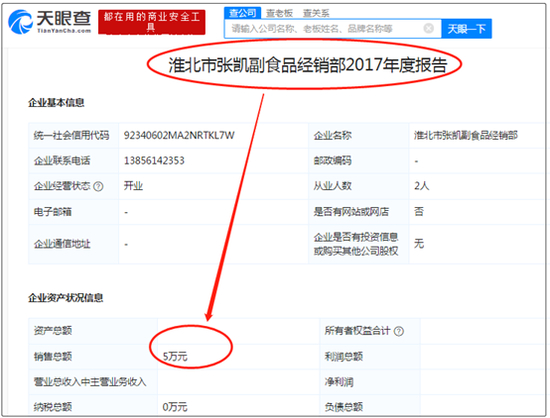 另外,公司招股书披露的淮北市张凯副食品经销部为公司前二十大经销商,2016年交易金额超过2000万元,而该公司2017年的销售额骤变仅为5万元。