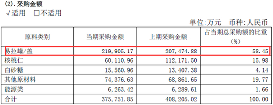 再从公司成本端看,公司核桃乳为主,其主要成本为易拉罐、核桃乳及白砂糖。值得一提的是,核桃乳为主的产品,其核桃成本却远低于易拉罐。2018年易拉罐采购成本为21.99亿元,占总采购之比约58.45%,而核桃采购成本仅为6.01亿元,核桃采购成本占比仅为15.98%。