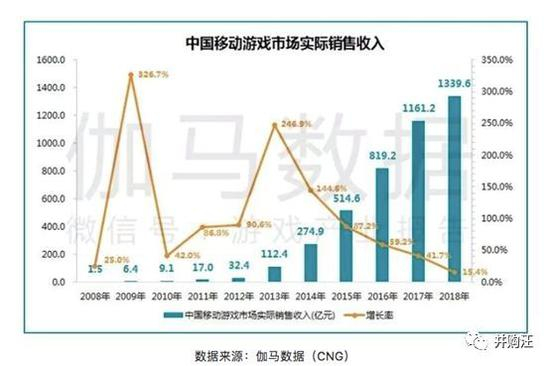 行业角度,经历了近五年高速增长后,2018年中国移动游戏市场实现收入1339.6亿元,增速仅为15.4%。这主要受到三方面影响: