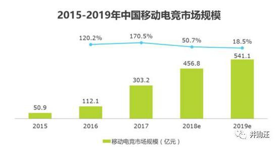 移动游戏中的细分领域移动电竞游戏依靠头部游戏和对细分用户的渗透,2018年整体市场规模达456亿元,同比增加50.7%,远高于行业增速。多人在线战术竞技游戏MOBA《王者荣耀》和第一人称射击游戏FPS《绝地求生》最受欢迎,头部效应明显。