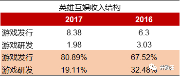 2016年、2017年、2018年,被合并方英雄互娱分别实现营业收入9.36亿、10.36亿和11.92亿。收入构成中以游戏发行收入为主,占比超70%;毛利率分别为88.43%、76.70%和71.97%,毛利率不断下降。