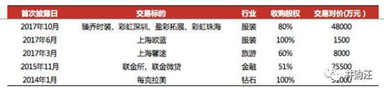 2010年登陆资本市场以后,由于主业增长空间小,赫美集团不断进行外延式并购,跨界转型,收购业务涉及钻石、金融、旅游、服装各个行业。