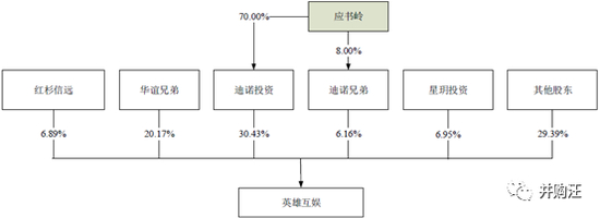 应书岭持通过迪诺投资间接持有英雄互娱30.43%的股份,为英雄互娱的实际控制人;同时,应书岭持有迪诺投资的一致行动人天津迪诺兄弟资产管理合伙企业(有限合伙)8.00%的出资份额,迪诺兄弟持有英雄互娱6.16%的股份。